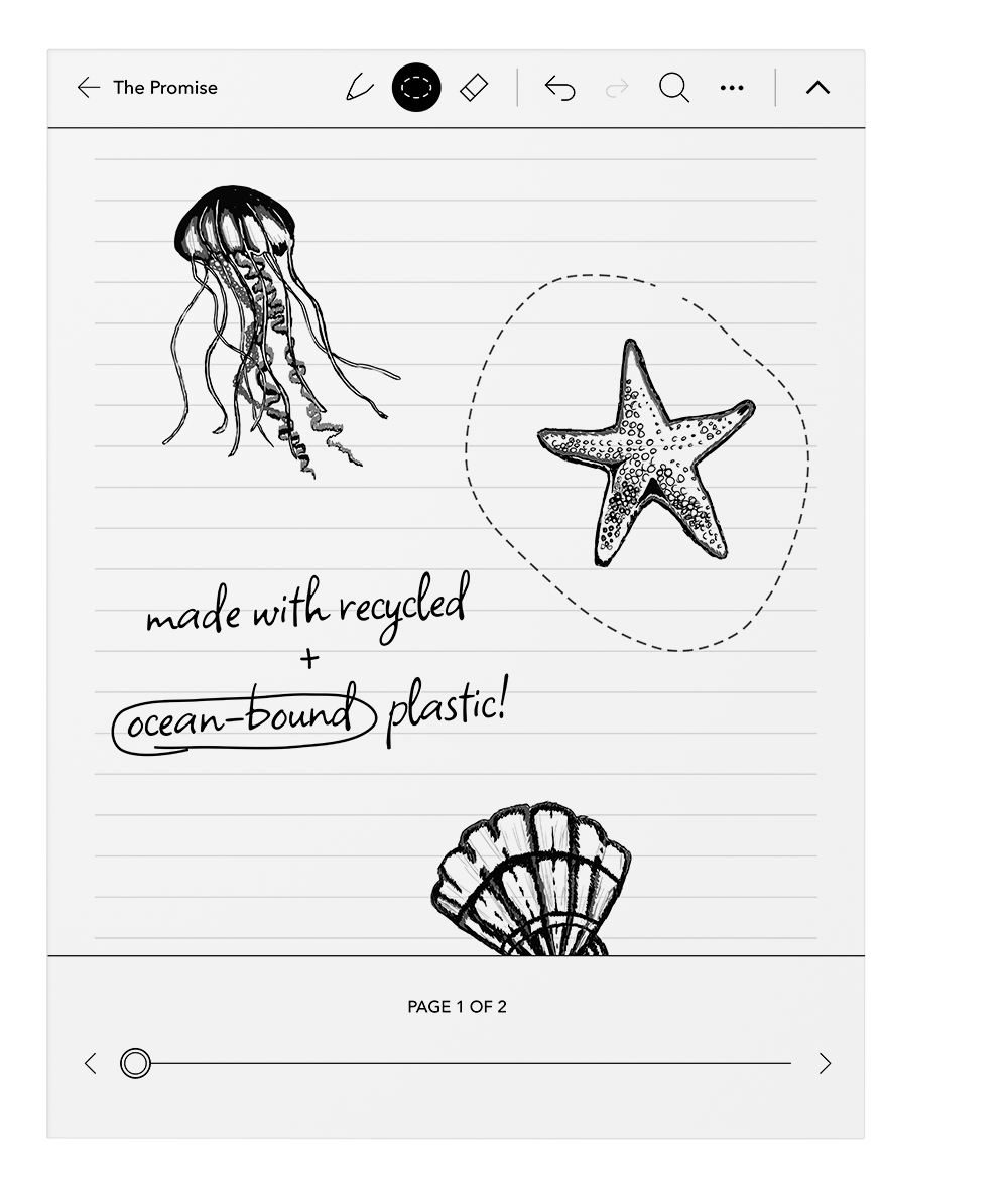 As part of our commitment to using more sustainable materials in Kobo eReaders, Kobo Elipsa 2E is made with recycled and ocean-bound plastic, and recycled magnesium alloy. Its packaging is also more sustainable. Learn more at kobo.com/eco